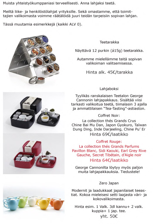 Meillä ei ole minimi tilausmäärää tuotteille, mutta pienemmät tilaukset vaikuttavat hintaan. Tiedustelut ja kysymykset: Co Tran 044-5182080 [email protected]
